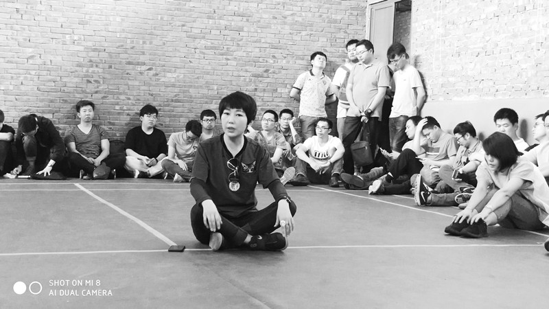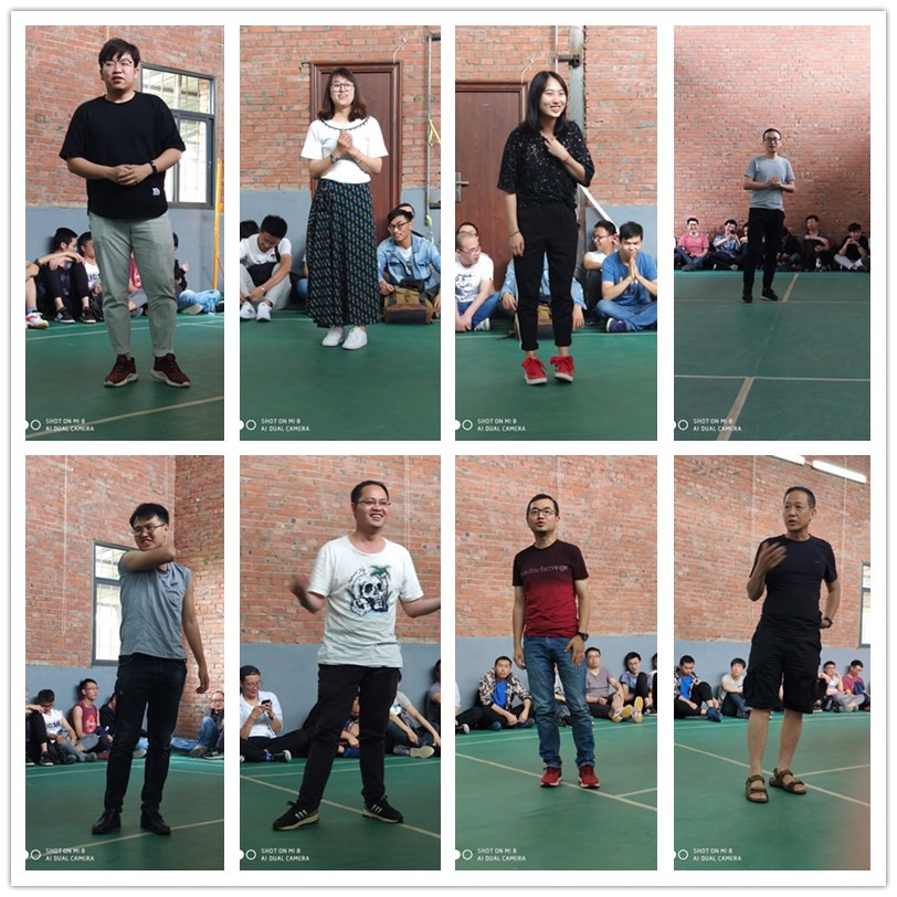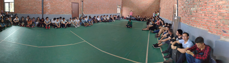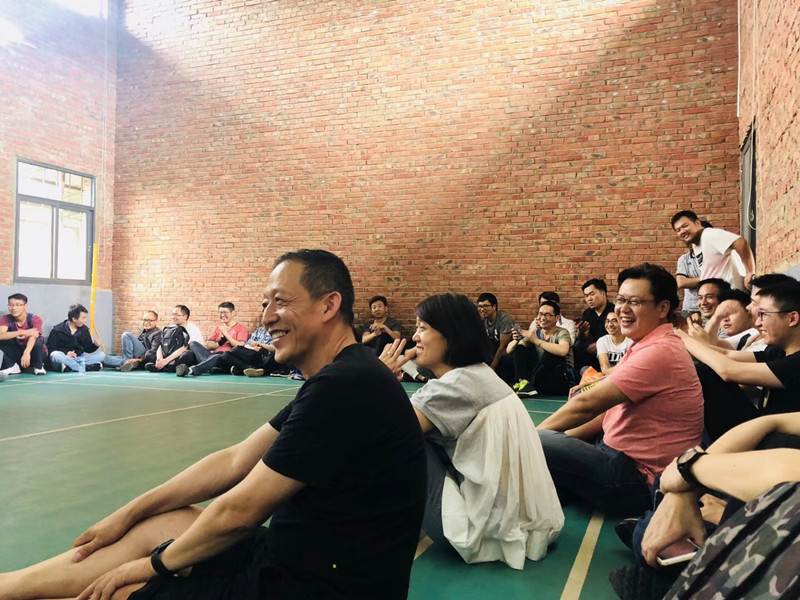 環(huán)繞著羽毛球館,全體小伙伴席地而坐,氛圍輕松且不拘謹,由主持人---云總介紹公司各部門管理層給伙伴們認識。
